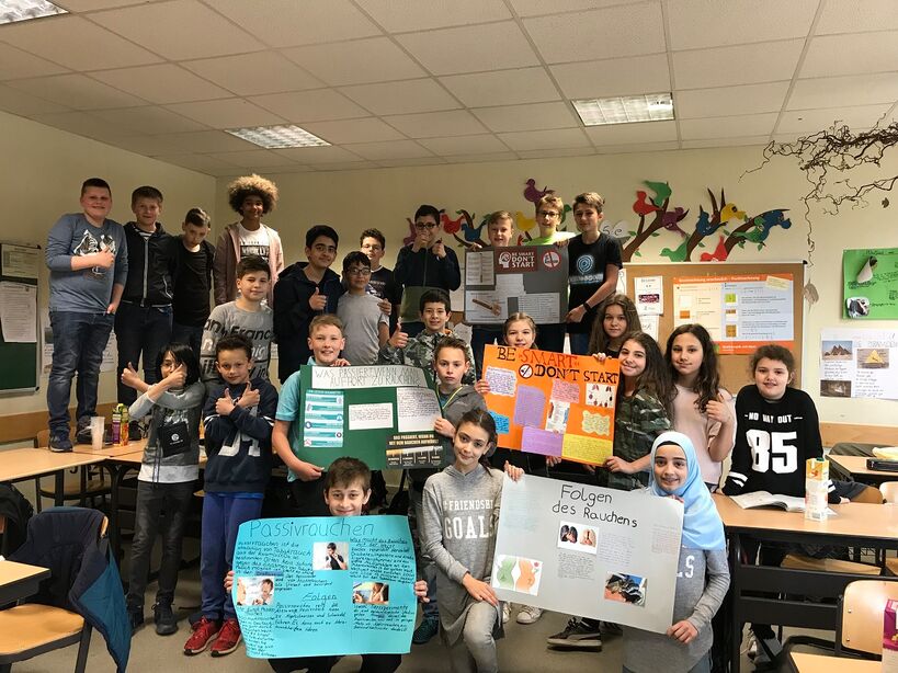 Die Klasse 6e des Leibniz Gymnasium in Gelsenkirchen-Buer nimmt in diese Jahr teil und möchte die Gelegenheit nutzen, ihre Mitmenschen über die schädlichen Nebenwirkungen des Rauchens aufzuklären. Dafür beschäftigen sie sich im Unterricht mit den Inhaltsstoffen der Zigaretten und den Auswirkungen dieser auf die eigene Gesundheit sowie die der Mitmenschen. In Kleingruppen erarbeiten sie einzelne Schwerpunkte und gestalten dazu Plakate.