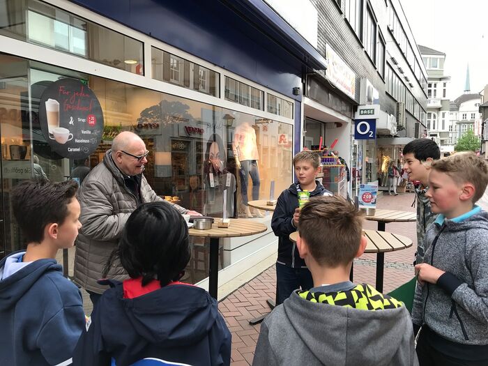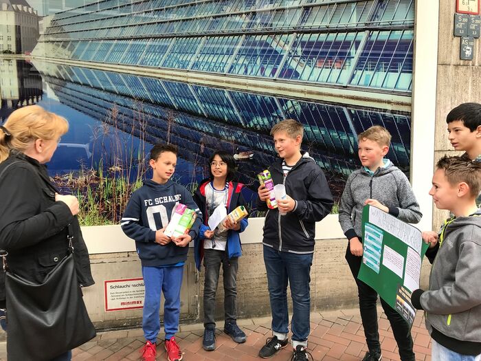 In der Innenstadt angekommen, ausgerüstet mit Karteikarten, Plakaten, Bechern und Säften suchten die Schülerinnen und Schüler gezielt Passanten auf, die eine Zigarette rauchten und erlebten einige Erfolgserlebnisse von denen sie Ihren beiden Lehrerinnen Frau Bsaisou und Frau Winkelmann im Anschluss stolz berichteten.