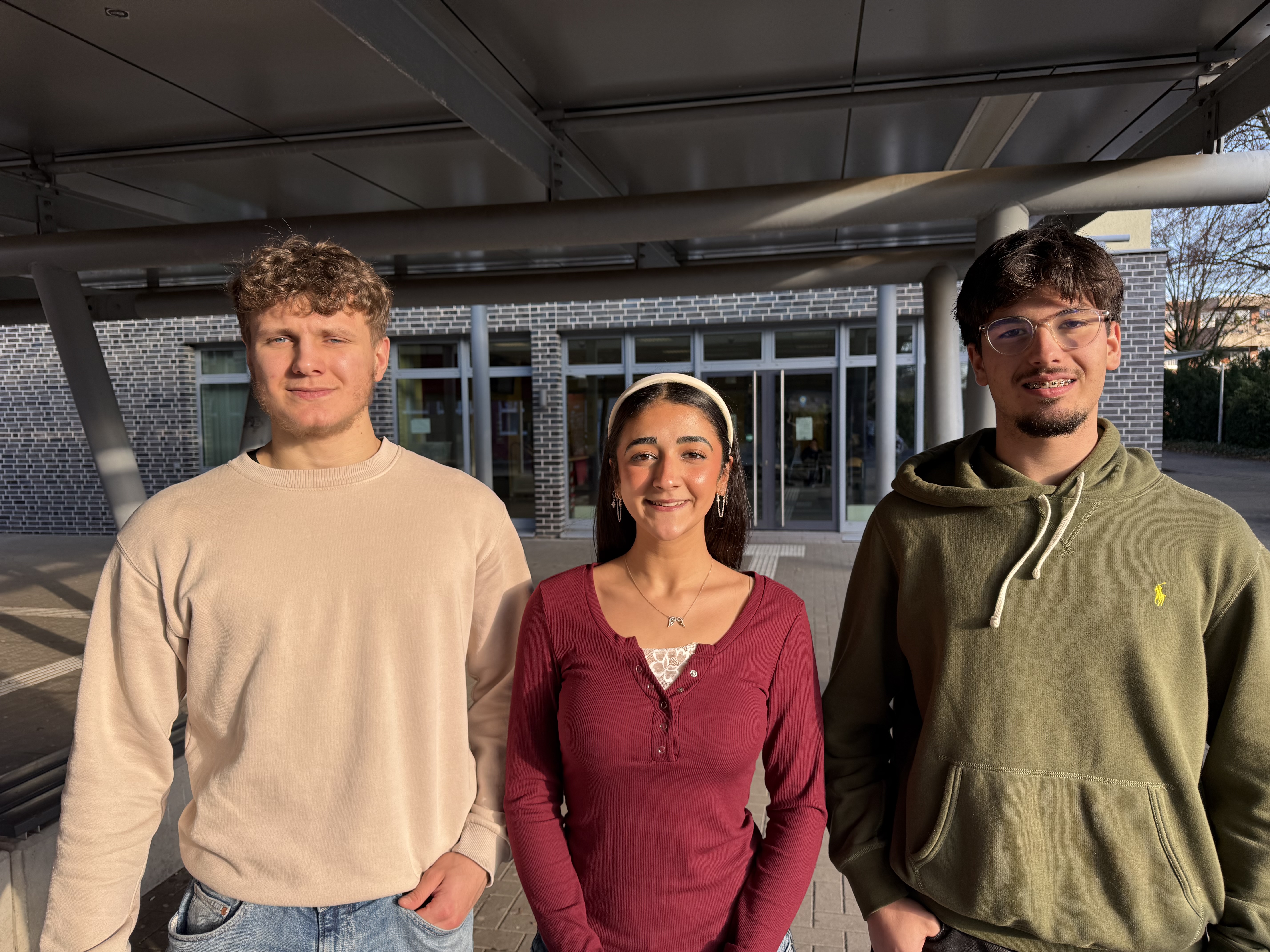 Wir legen großen Wert darauf, dass unsere Schülerinnen und Schüler ein humanitäres Bewusstsein entwickeln. Ein konkretes Zeichen gegen Rassismus und Diskriminierung setzen wir beispielsweise durch unsere Beteiligung an der Anti-Rassismus-Woche unter dem Leitmotiv "Schule ohne Rassismus - Schule mit Courage" und auch durch unsere Spendenaktion für die Erdbebenopfer in Syrien und in der Türkei. Die Schülervertretung (SV) engagiert sich zudem bei kulturellen Veranstaltungen, wie dem "Interkulturellen Abend" und unterstützt Theateraufführungen, wie das Stück "Stolpern" des Jugendtheaters Piccolo, das Antisemitismus thematisiert. Wir setzen uns für den Frieden ein, indem wir den Austausch mit der gesamten Schulgemeinde suchen und darüber hinaus auch kreativ werden durch die Gestaltung von Wimpelketten und einem Banner.