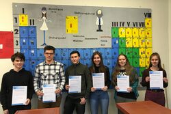 Nachdem im Dezember die zweite Runde der Chemie-Olympiade geschrieben wurde, kamen nun endlich die Urkunden. Diese erhielten unsere sechs Teilnehmer/innen heute vom Schulleiter Herrn Fulst und ihrer Chemielehrerin Frau Winkelmann.