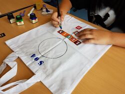 In unserer Notbetreuung wurden heute individuelle Taschen gestaltet. Eine Fußball-Tasche darf dabei natürlich nicht fehlen...