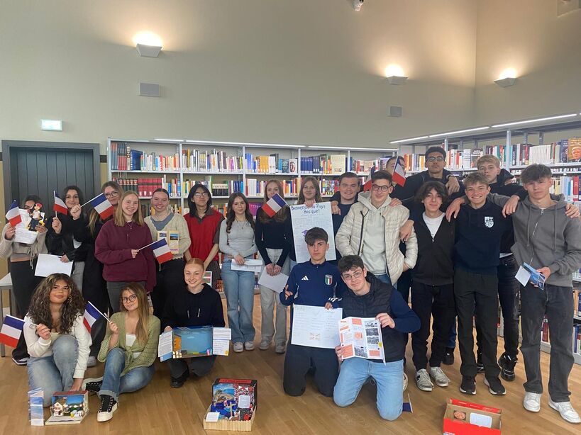 Gegen Ende des Schuljahres bereiteten die Französischkurse der Klassen 10a, 10d und 10c ein besonderes Projekt vor: Eine Ausstellung über das Baskenland. In den Wochen zuvor lernten die Schüler*innen im Französischunterricht die Besonderheiten der baskischen Kultur und Architektur kennen, beschäftigten sich mit regionalen Spezialitäten, Städten und Festen.