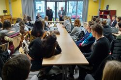 Am Freitag den 01.03.2019 versammelten sich alle Schülerinnen und Schüler der evangelischen und katholischen Religionskurse der Q2 im Zeitraum von 12:05 bis 13:40 Uhr im Mehrzweckraum, wo sie die Gelegenheit hatten, mit dem Propst Pottbäcker und dem Superintendenten Montanus über die Kirche und ihre Bedeutung für Europa zu diskutieren.