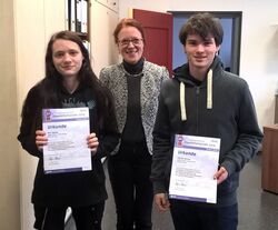 Die zweite Runde der internationalen Physikolympiade bestritten zwei unserer Q2-Schüler, am 13.11. bei uns in der Schule. Ganz freiwillig schrieben sie eine dreistündige Physikklausur, in der ohne Hilfsmittel kniffelige Physikaufgaben quer durch alle Gebiete der Physik lösen mussten.