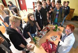 Nachdem die Schülerinnen und Schüler der Klassen 9a, 9c und 9d sich in den letzten Wochen im Deutschunterricht von Frau Parchettka und Herrn Eisenbraun intensiv mit dem Roman „Der Erdbeerpflücker“ der Autorin Monika Feth beschäftigt hatten, konnten sie am Donnerstag die Schriftstellerin persönlich kennenlernen. In einer lockeren Atmosphäre beantwortete Monika Feth viele Fragen zu ihren Romanen und gab [nbsp]interessante Einblicke in ihren Berufsalltag als Schriftstellerin.