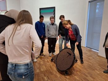 Die Schüler*innen aus den 10er Klassen haben mit Ihren Kunstlehrkräften (Frau Nyenhuis und Frau Pruß) die Kinetische Sammlung des Kunstmuseums in den letzten Wochen besucht. Sie haben schon teilweise vor Ort ein kleines Kunstwerk hergestellt und werden sich jetzt im Unterricht mit dem Thema Kinetik theoretisch und praktisch auseinandersetzen.