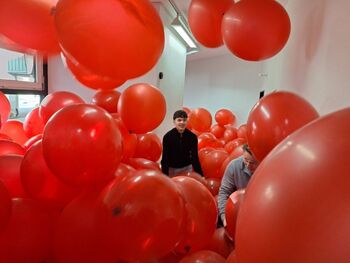 Ganz besonders faszinierte die Schüler*innen das „Bällchenbad“ des Künstlers Martin Creed, der Gong und die neuen Lichtobjekte. Hier ließen sich tolle „Selfies“ fotografieren. Auch die Künstlerin Alona Rodeh zog die Schülerinnen und Schüler magisch an.
