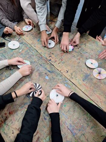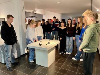 Die Schüler*innen aus den 10er Klassen haben mit Ihren Kunstlehrkräften (Frau Petershöfer, Frau Zovak, Herr Mancini-Ramirez und Frau Pruß) die Kinetische Sammlung des Kunstmuseums in der letzten Woche besucht. Sie haben schon vor Ort ein kleines Kunstwerk hergestellt und werden sich jetzt im Unterricht mit dem Thema Kinetik theoretisch und praktisch auseinandersetzen. Kinetische Kunst ist ein Objekt, welches sich bewegt, bewegt werden kann oder die Illusion von Bewegung erzeugt.