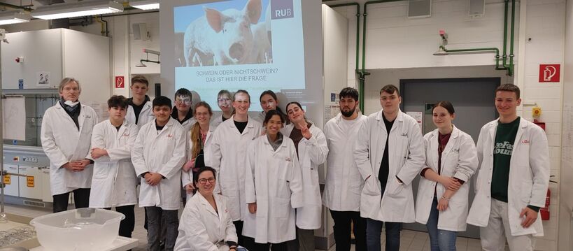 Mit dem Biologie Leistungskurs haben wir heute die Universität Bochum besucht, um nicht nur die Theorie in der Schule zu lernen, sondern auch um praktische Erfahrungen zu sammeln und damit das Verständnis dahinter zu verbessern. Dabei wurden wir von Frau vom Orde, Herrn Doktor Buch, sowie von jemandem von der Universität begleitet, der uns alles ausführlich erklärt hat.