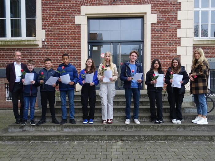 Auch in diesem Schuljahr haben wieder einige Schüler*innen die Prüfung zur Erlangung des Delf-Zertifikats bestanden und somit bewiesen, dass sie die französische Sprache schon so gut beherrschen, dass sie in alltäglichen Situationen sicher handeln können. Alle Schüler*innen haben sehr gute Leistungen erbracht! Herr Scharnowski gratulierte ihnen mit einer Rose zur bestandenen Prüfung.