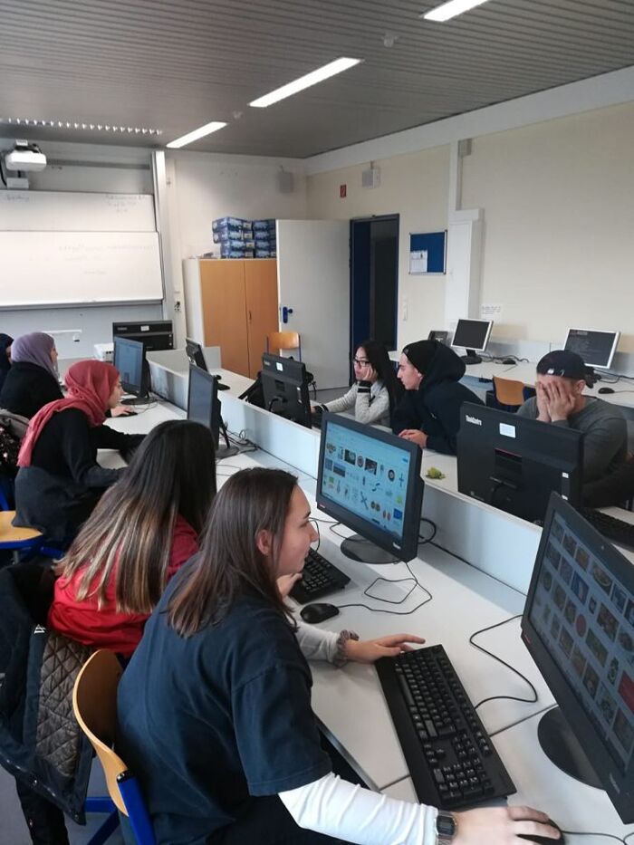 Am Dienstag nahm ein Französischkurs der Q1 zudem am Internet-Teamwettbewerb teil, der jährlich vom Cornelsen-Verlag angeboten wird. In Teams beantworteten die Schülerinnen und Schüler Fragen und Aufgaben in französischer Sprache rund um das Thema „Frankreich“ und „Frankophonie“.