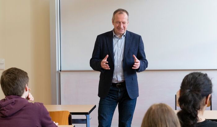Der Bundestagsabgeordnete Oliver Wittke stellte sich den Fragen, die die Schülerinnen und Schüler der Q1 im Unterricht gesammelt hatten.  Die Schwerpunkte der Fragen lagen dabei auf dem Arbeitsalltag eines Abgeordneten und auf wirtschaftspolitischen Fragen. Herr Wittke schilderte anschaulich, wie herausfordernd der politische Alltag ist und mit welchen Schwierigkeiten die Politik heute konfrontiert ist. Diskutiert wurden aber auch, welche Auswirkungen der Brexit und das Corona-Virus auf die deutsche Wirtschaft haben werden. Die Schülerinnen und Schüler nutzten die Gelgenheit, den ehemaligen Oberbürgermeister nach seinen Erwartungen für die gemeinsame Heimatstadt Gelsenkirchen zu fragen.
