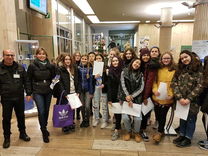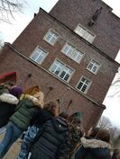 Zuerst besuchen die 18 Schülerinnen und 4 Schüler mit Ihren Lehrern Frau Pruß und Herrn Rupp das Bueraner Rathaus. Es ist berühmt für folgende Dinge: Paternoster, Fensterbilder und für einige Bauelemente in Stil der 50er Jahre. Die weiteren Gebäude, welche im Kurs besprochen wurden, gehören zum Gelsenkirchener Backsteinexpressionismus. Backsteinexpressionismus ist die Bezeichnung für eine spezielle Variante expressionistischer Architektur unter Verwendung von Backstein oder Klinkern, die in den 1920er Jahren hauptsächlich in Deutschland entstand.