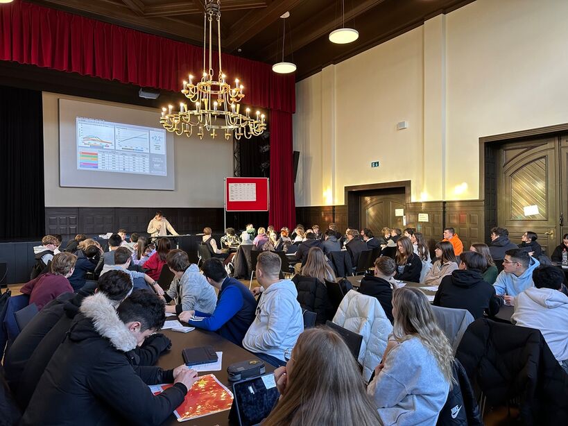 Vor einer Woche, am 23.1.2024 kamen ca. 80 Schüler*innen der Jahrgangsstufen Q1 und Q2 aus den Grund- und Leistungskursen der Fächer Geographie und Sozialwissenschaften in der Aula des Leibniz-Gymnasiums zusammen, um innerhalb von sechs Unterrichtsstunden an einem Planspiel teilzunehmen, das die Weltklimakonferenz simulierte. Im Mittelpunkt dieses handlungsorientieren Tages standen Fragen, wie wir die globale Erwärmung begrenzen können und welche Rolle die verschiedenen Länder und Interessengruppen bei den Klimaverhandlungen spielen. Angeboten und durchgeführt wurde diese Veranstaltung von „Die Multivision e.V.“, einer gemeinnützigen Organisation, die sich für Klimaschutz und Bildung einsetzt. Wiederum an die Schule geholt wurde die Klimakonferenzsimulation durch das Team Klima der Schule; die Finanzierung wird das Team Klima über das Budget der städtischen EnerGEtisch-Initiative beantragen können.