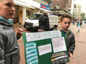 In der zweiten Unterrichtsstunde am Dienstag, den 24.04.18 machten sich 27 Schülerinnen und Schüler auf, um in der Innenstadt von Gelsenkirchen-Buer Fußgänger über das Rauchen aufzuklären. Die Schülerinnen und Schüler erwarteten bereits seit einer Woche freudig den Tag, hatten viel Arbeit in ihre Plakate gesteckt und ihre Vorträge in Gruppen intensiv geplant.