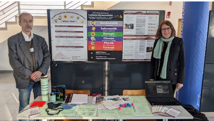 An unserem Stand führten wir anredende Gespräche mit Vertreter*innen anderer MINT-EC – Schulen und stellten unter anderem fest, dass unsere MINT – Freu(n)de und unser MINT – Engagement das Leibniz zu etwas Besonderem machen.