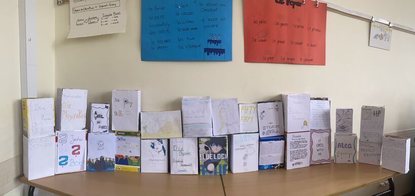 Mit großer Unterstützung von Mme Pecher, konnten wir als Französischkurs der Klassen 9b und 9e nach einigen Wochen unsere Lieblingsbücher auf französisch vorstellen. Bei dem Projekt haben wir viele neue Vokabeln gelernt. Am Ende dieser Unterrichtsreihe, in der wir ebenfalls eine neue Grammatik lernten (das *Imparfait*), stand nun die Aufgabe an, auf einer Cornflakespackung eine Zusammenfassung, eine Buchempfehlung sowie unsere Meinung über unser Lieblingsbuch zu schreiben. Diese Aufgabe hat unsere 3. Klassenarbeit ersetzt, sodass wir uns natürlich sehr viel Mühe gegeben haben.