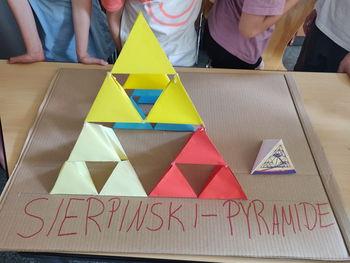 Bei der alljährlich stattfindenden Veranstaltung SAMMS extern hatten ausgewählte Schülerinnen und Schüler der Stufe 6 an zwei Tagen die Gelegenheit zu erfahren, in welchen verschiedenen Bereichen Mathematik zur Anwendung kommt. Aufgeteilt in vier Workshops befassten sich die Jugendlichen mit spannenden Themen. Sie lernten z.B. Spielstrategien am Beispiel von Vier gewinnt, Tic Tac Toe oder Bauernschach. Sie befassten sich mit der Sierpinski-Pyramide und den häufig in der Natur vorkommenden Fibonacci-Zahlen und erfuhren so etwas über den Unendlichkeitsbegriff. Außerdem planten sie die kürzeste Strecke von einem Ort zum anderen, ähnlich wie es ein Navigationssystem berechnen würde. Des Weiteren wurde mithilfe einer Himmelskarte die Position von Planeten und Sternen bestimmt.