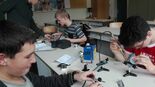 Es ist Freitagnachmittag am Leibniz-Gymnasium, doch im Physikraum herrscht reges Treiben. Die Schüler der Jahrgangsstufen 9 und Q1, sowie die beiden Lehrkräfte - Frau Winkelmann und Herr Doktor - freuen sich bereits seit zwei Wochen auf ihren eigenen Wecker, den sie in der Schule selbst löten.