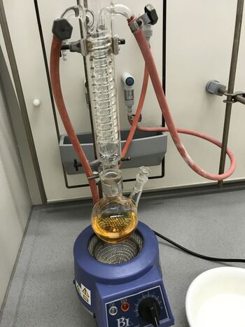 Die ganze Gruppe wurde daraufhin in 2 "kleinere" Gruppen unterteilt. Die einen haben die sogenannte "Hydrolyse" durchgeführt und beobachtet und die anderen die sogenannte "Veresterung". Dann wurden nochmal die 2 großen Gruppen in 3er Gruppen eingeteilt.