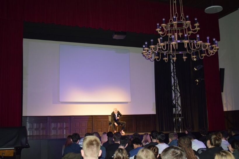 Exklusiv für und mit den Q2-Schülern führte am 17.01.2025 Markus Kiefer sein Ein-Mann-Theaterstück: „Ein Bericht für eine Akademie“ von Franz Kafka in der Aula des Städt. Leibniz-Gymnasiums auf. Die ca. 100 Schüler*innen waren sehr beeindruckt von diesem Event.