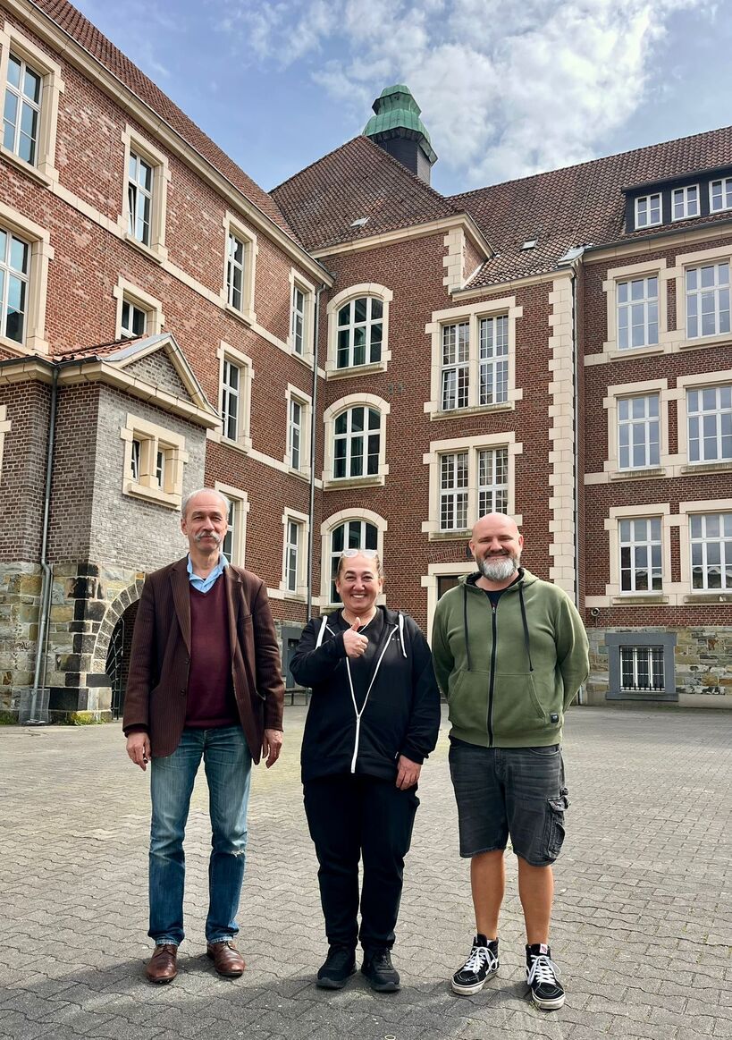 Das Foto zeigt die Beteiligten nach der Vertragsunterzeichnung: In der Mitte Frau Celebi, Inhaberin von „Muttis-Küche“, links Schulleiter Herr Scharnowski und rechts Herr Golletz als Vertreter des Fördervereins.